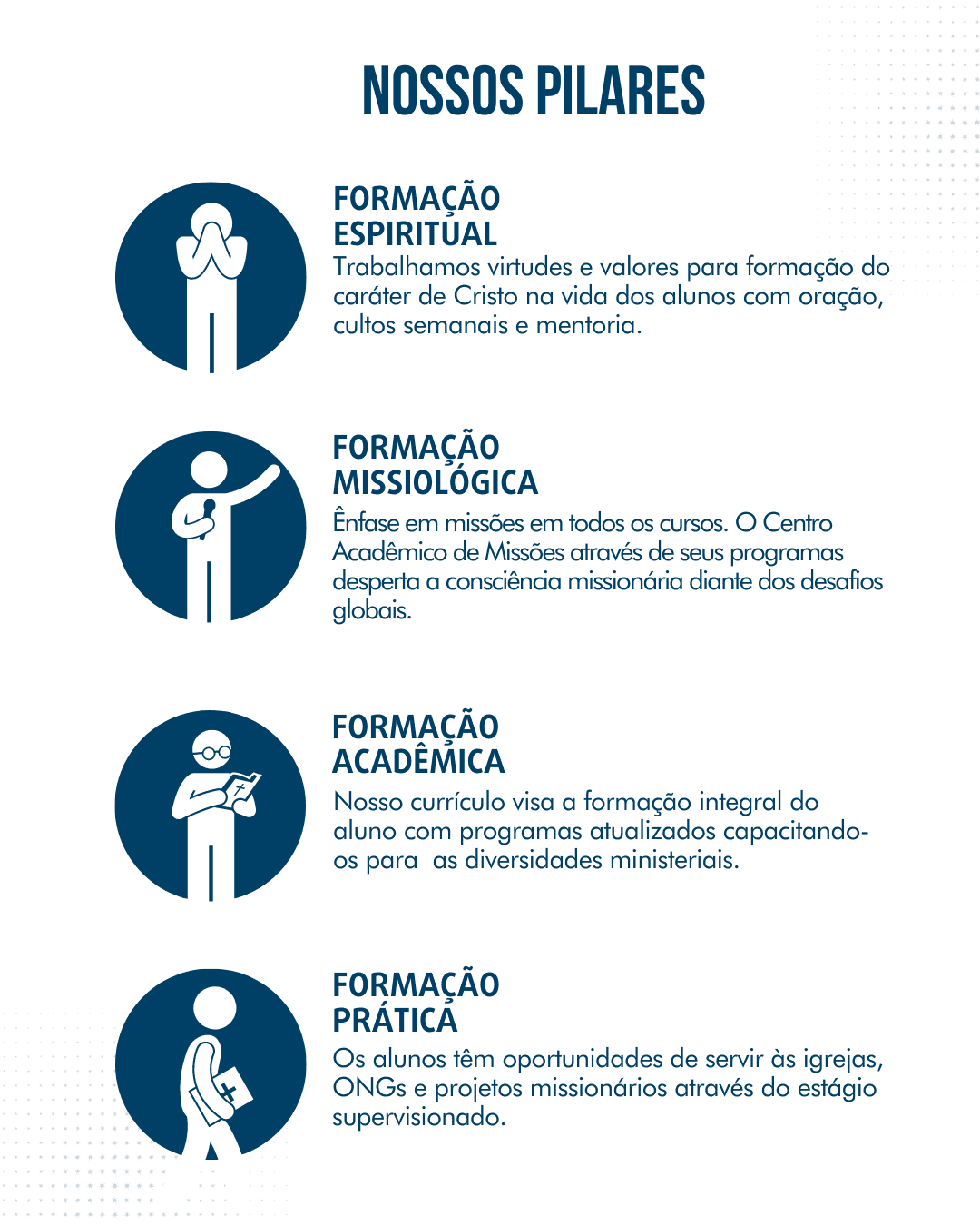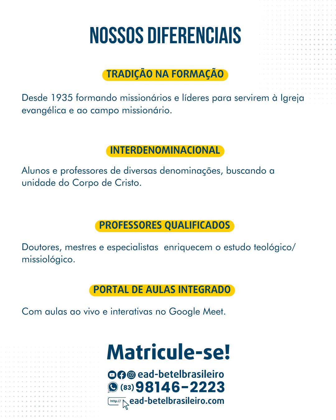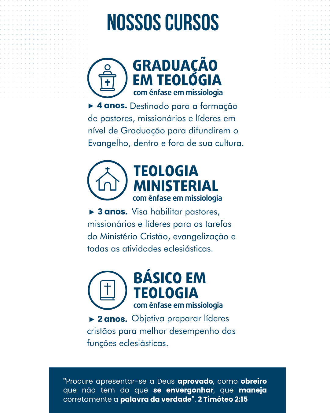 Temos professores experientes, uma plataforma moderna e estamos há mais de 86 anos preparando líderes para servir ao Reino de Deus.
